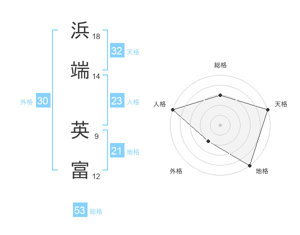 浜端 英富さんの総格は53画の3点!