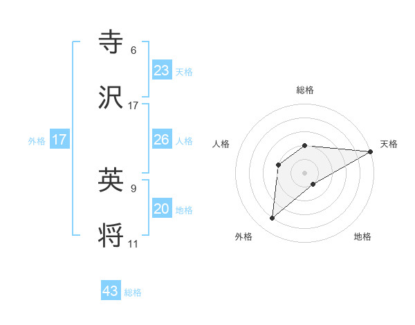 寺沢 英将さんを姓名の画数から五運を鑑定