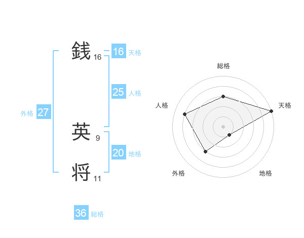 銭 英将さんの天格は16画の5点!