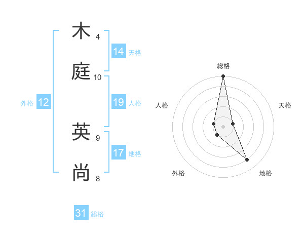 木庭 英尚さんの総格は31画の5点!