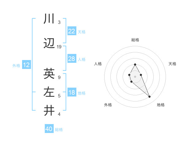 川辺 英左井さんの地格は18画の4点!