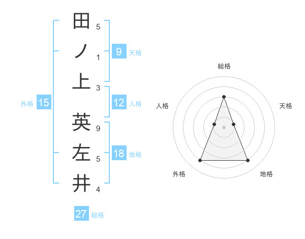 田ノ上 英左井さんを姓名の画数から五運を鑑定