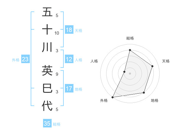 五十川 英巳代さんの総格は35画の4点!