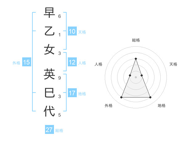 早乙女 英巳代さんを姓名の画数から五運を鑑定