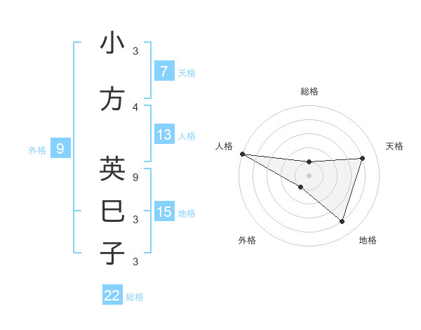 小方 英巳子さんの総格は22画の1点!