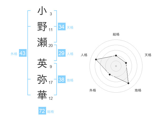 小野瀬 英弥華さんを姓名の画数から五運を鑑定