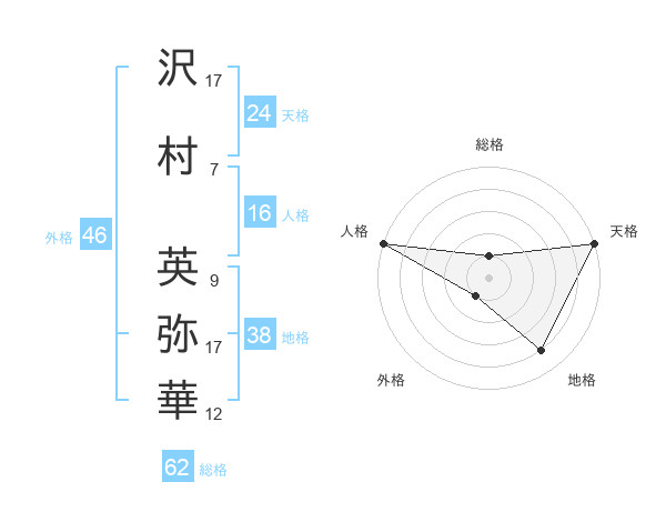 沢村 英弥華さんの天格は24画の5点!