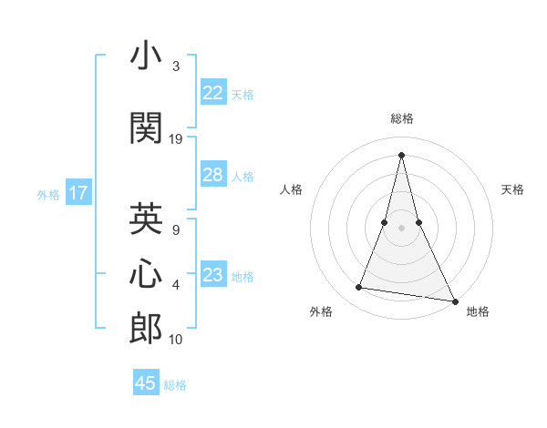 小関 英心郎さんを姓名の画数から五運を鑑定