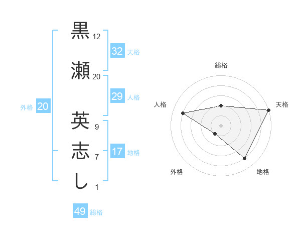 黒瀬 英志しさんの天格は32画の5点!