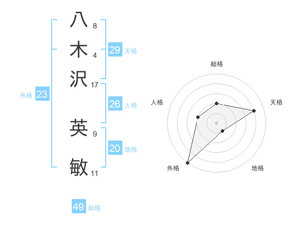 八木沢 英敏さんを姓名の画数から五運を鑑定