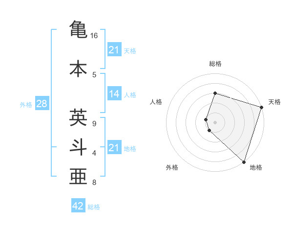 亀本 英斗亜さんの天格は21画の5点!