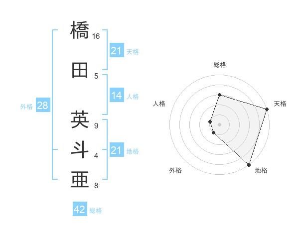 橋田 英斗亜さんを姓名の画数から五運を鑑定