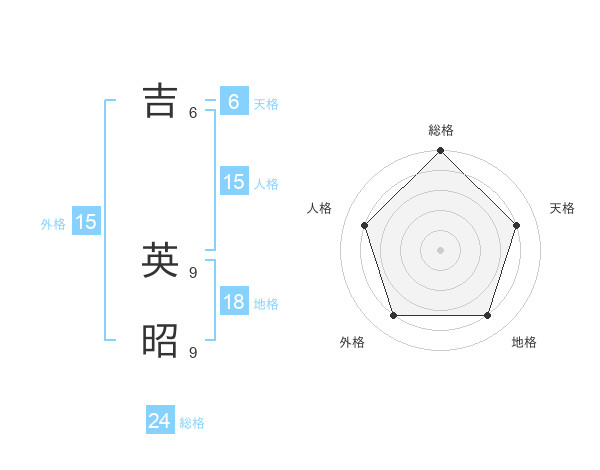 吉 英昭さんの総格は24画の5点!