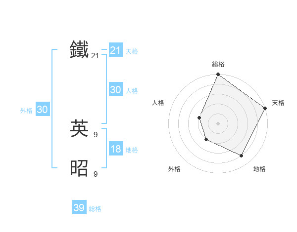鐵 英昭さんの総格は39画の5点!