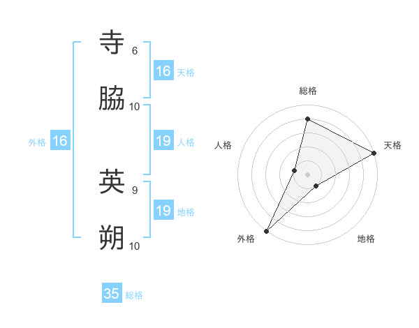寺脇 英朔さんの天格は16画の5点!