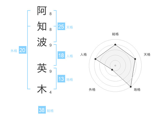 阿知波 英木さんの総格は38画の4点!