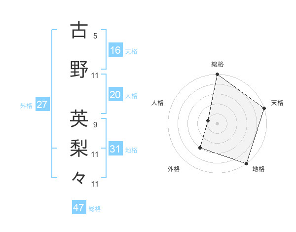 古野 英梨々さんを姓名の画数から五運を鑑定