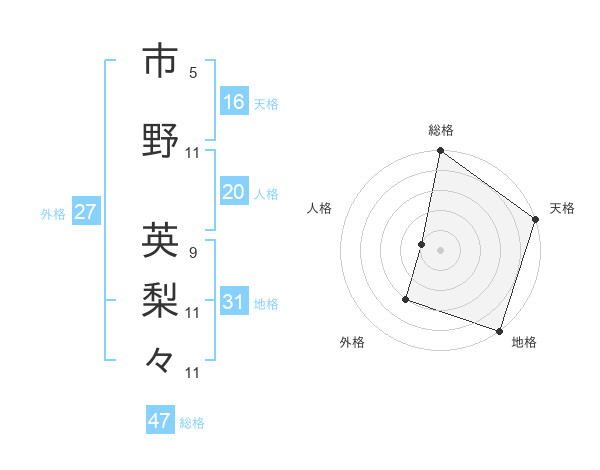 市野 英梨々さんを姓名の画数から五運を鑑定