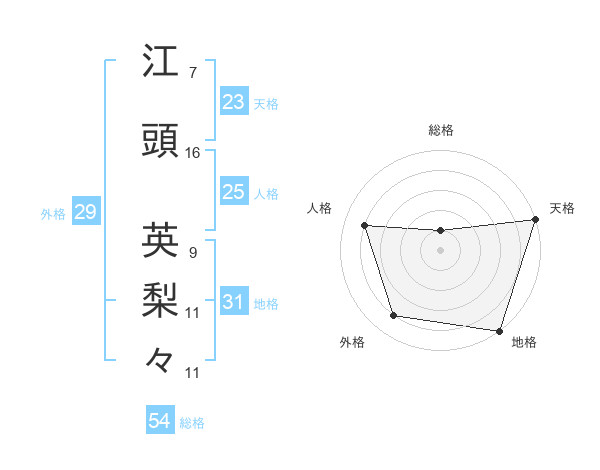 江頭 英梨々さんを姓名の画数から五運を鑑定