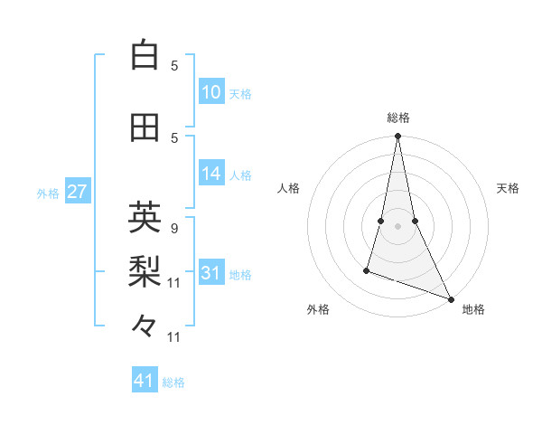白田 英梨々さんを姓名の画数から五運を鑑定