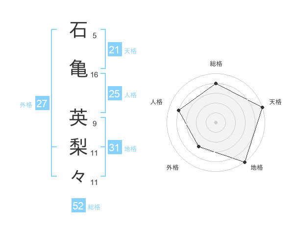 石亀 英梨々さんを姓名の画数から五運を鑑定