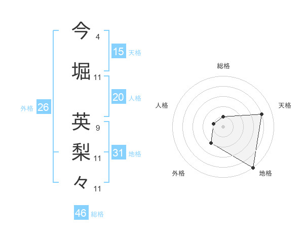 今堀 英梨々さんを姓名の画数から五運を鑑定