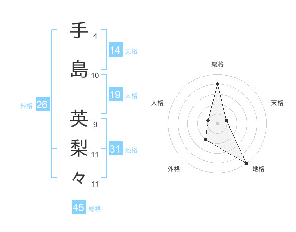 手島 英梨々さんの総格は45画の4点!