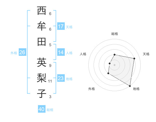 西牟田 英梨子さんの総格は40画の2点!