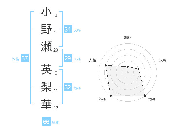 小野瀬 英梨華さんを姓名の画数から五運を鑑定