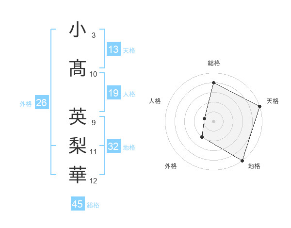 小髙 英梨華さんを姓名の画数から五運を鑑定