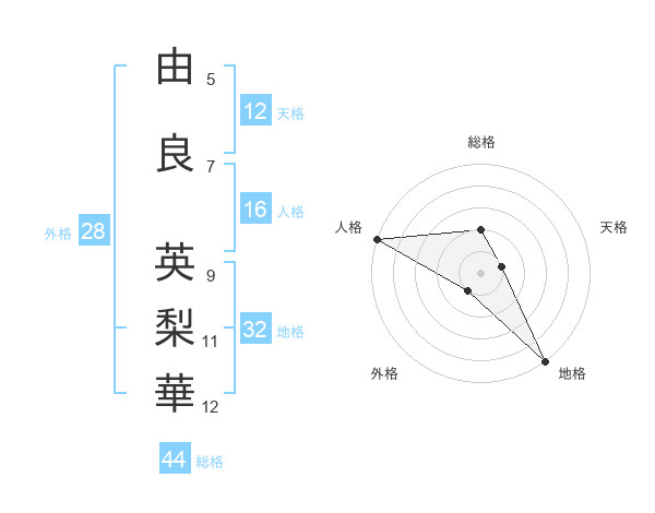 由良 英梨華さんの天格は12画の1点!
