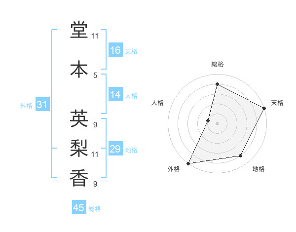 堂本 英梨香さんの総格は45画の4点!
