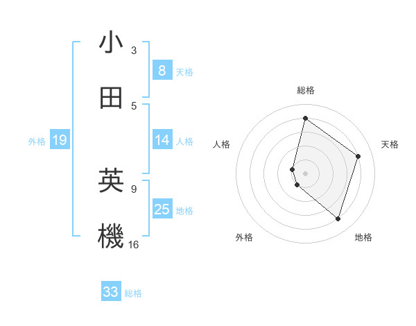 小田 英機さんの天格は8画の4点!