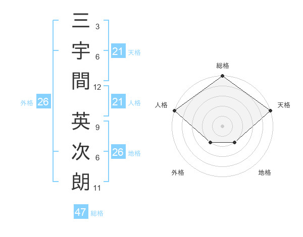三宇間 英次朗さんを姓名の画数から五運を鑑定