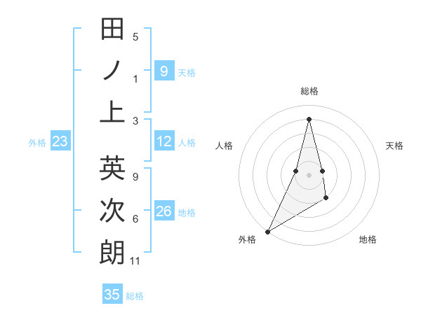 田ノ上 英次朗さんを姓名の画数から五運を鑑定