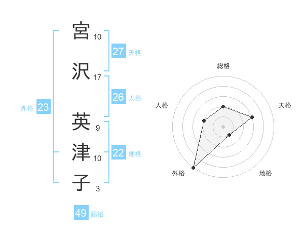 宮沢 英津子さんを姓名の画数から五運を鑑定