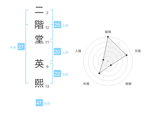 二階堂 英煕さんを姓名の画数から五運を鑑定