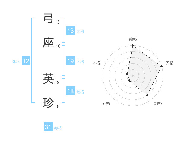 弓座 英珍さんを姓名の画数から五運を鑑定