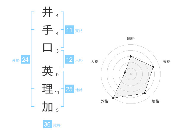 井手口 英理加さんを姓名の画数から五運を鑑定