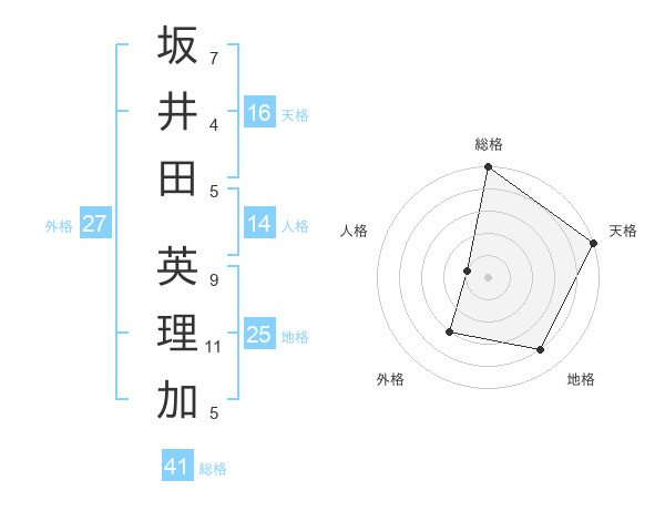 坂井田 英理加さんを姓名の画数から五運を鑑定