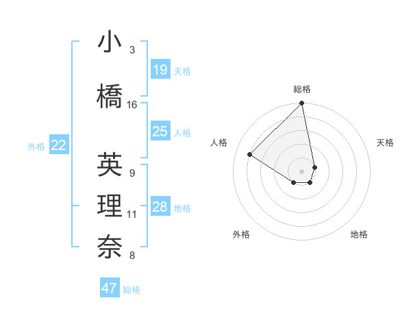 小橋 英理奈さんを姓名の画数から五運を鑑定