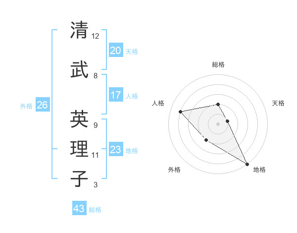 清武 英理子さんの総格は43画の2点