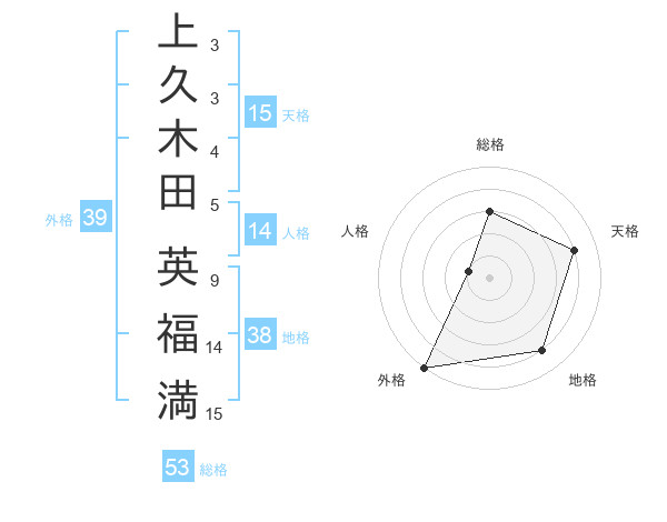 上久木田 英福満さんを姓名の画数から五運を鑑定