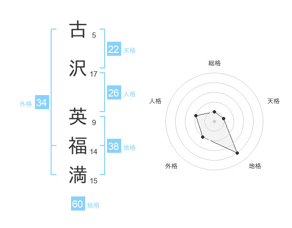 古沢 英福満さんを姓名の画数から五運を鑑定