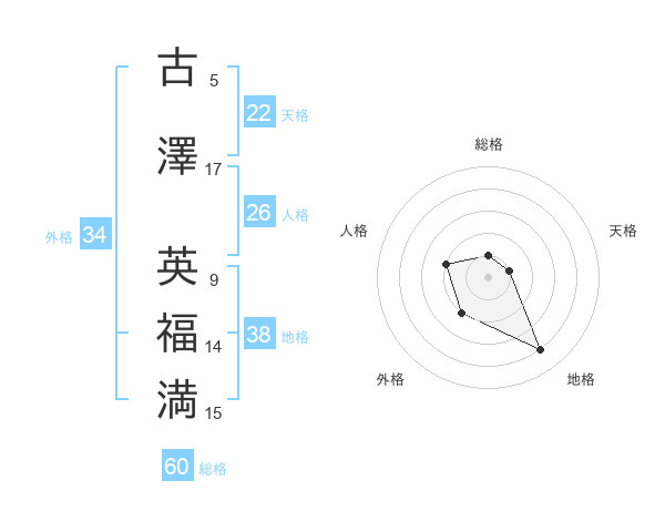 古澤 英福満さんを姓名の画数から五運を鑑定