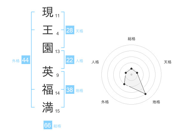 現王園 英福満さんを姓名の画数から五運を鑑定