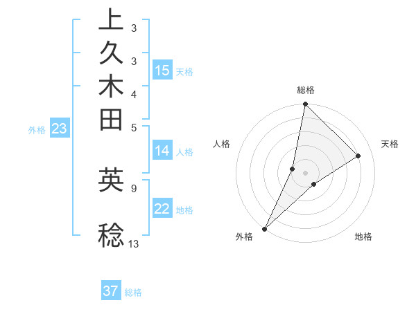 上久木田 英稔さんを姓名の画数から五運を鑑定