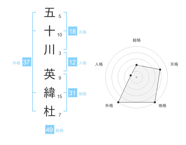 五十川 英緯杜さんを姓名の画数から五運を鑑定