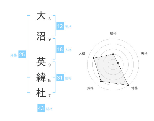 大沼 英緯杜さんを姓名の画数から五運を鑑定