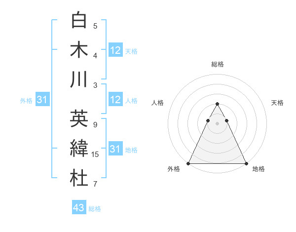 白木川 英緯杜さんを姓名の画数から五運を鑑定